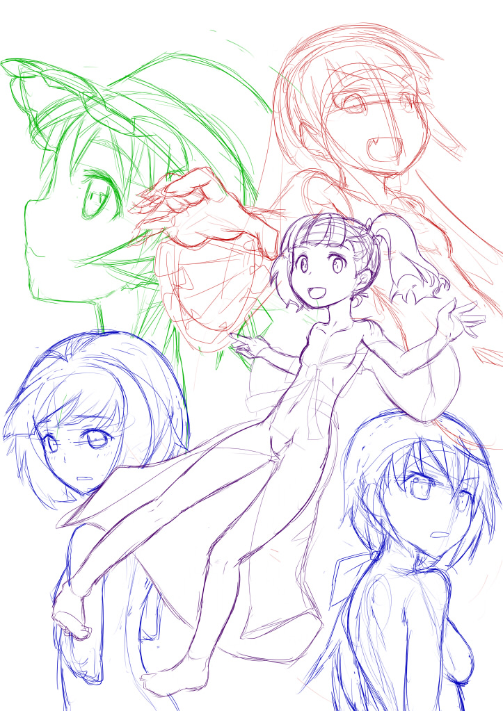 リクエストいただいてるはなざーさん無双絵のラフ案、案といっても完全に脳内会議用。